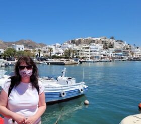 We arrived at the Naxos port from Santorini in the afternoon. The hotel provides complimentary pickup and drop-off service from the airport and Naxos port. The hotel manager (Katerina) and her husband were at the port to pick us up in their van.