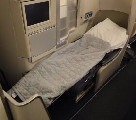 Seat Specification: Lie Flat Seats, Seat pitch: 72″, Seat width: 20″