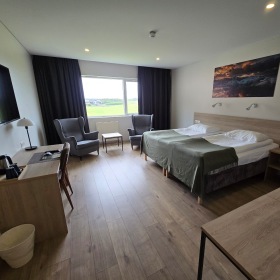 Hótel Skógafoss by EJ Hotels Skógar, Skogar 861 Iceland Hotel Skogafoss by EJ Hotels is located just 5 minutes walking distance from the Skogafoss falls. The biggest selling point of the hotel for us was being able to walk to the falls. The hotel included 2 days of parking inside the park. The rooms have a numeric keycode lock outside the wing so it did feel more secure. In the bathroom we saw a note saying hot water is sourced from geothermal source and might have sulphur smell. It wasn’t too bad and I actually enjoyed the uniqueness of it. …